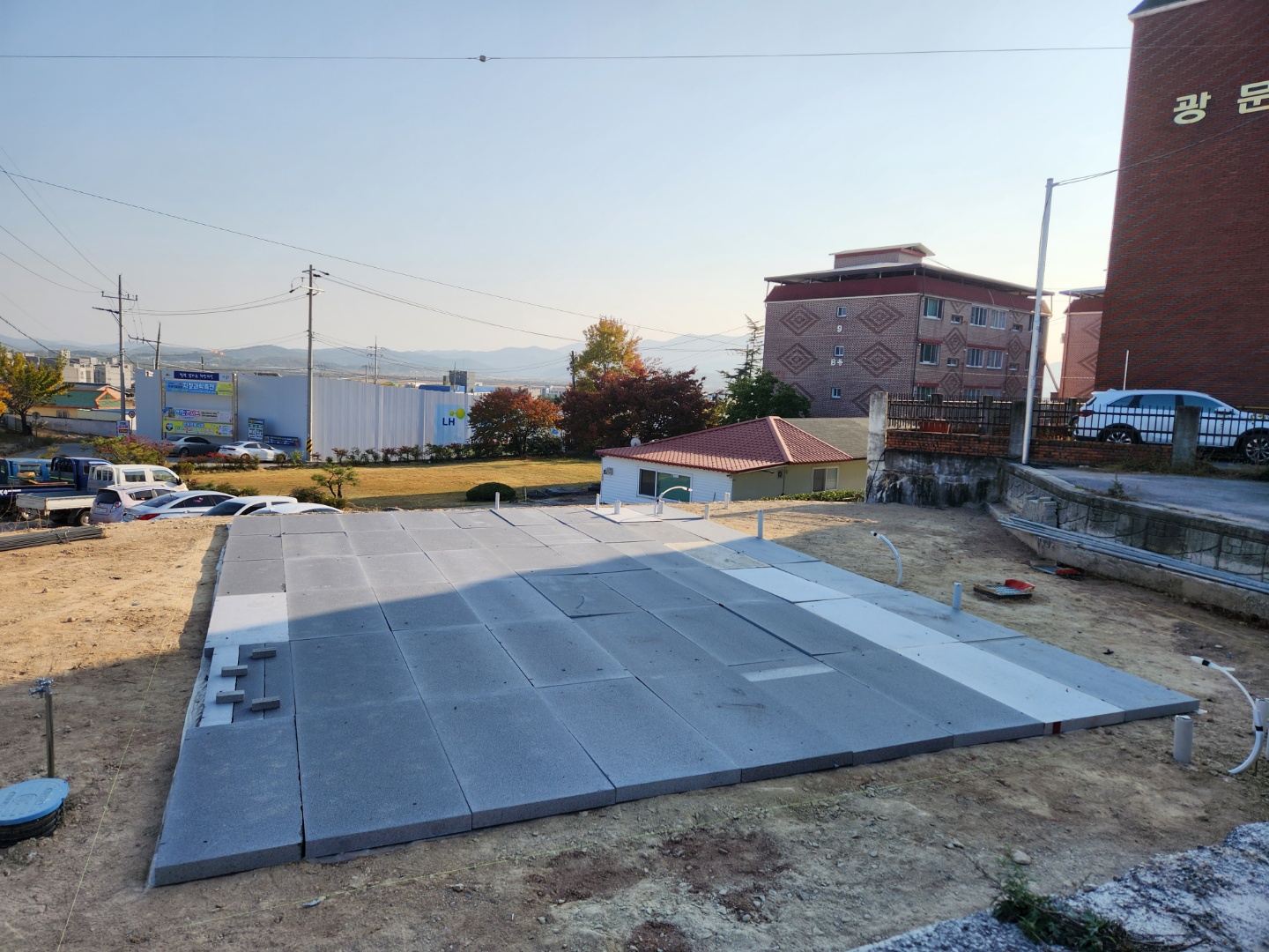[조립식및 상가주택신축] 의성 안계면 오폐수 배관공사 및 지반단열, 스치로폴 깔기 시공
