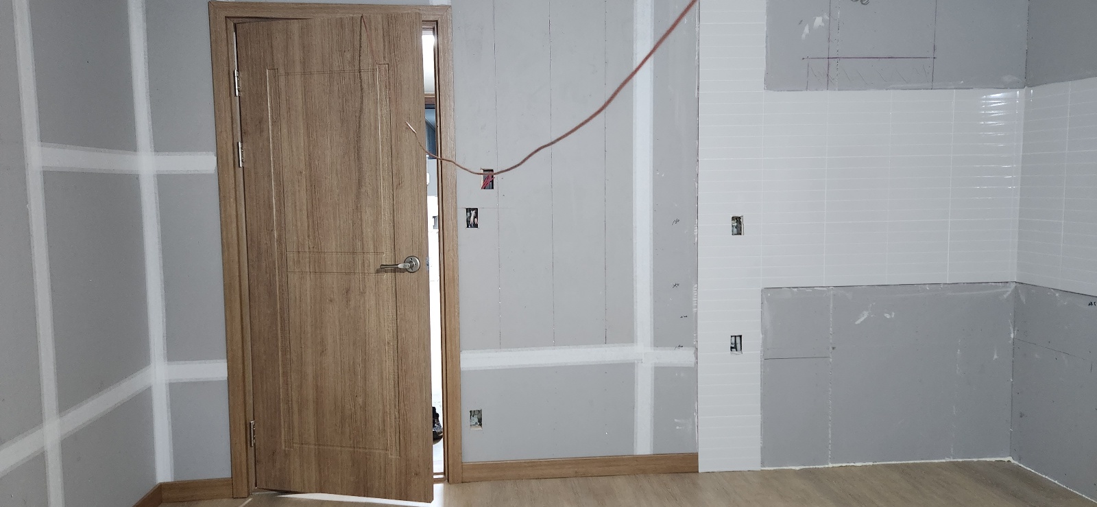 [조립식,상가건물] [신축]의성군 안계면 용기리 광성건설 증축공사-주방타일 작업 및 벽지 초배 작업